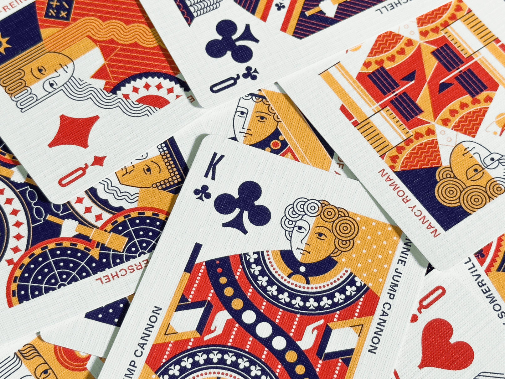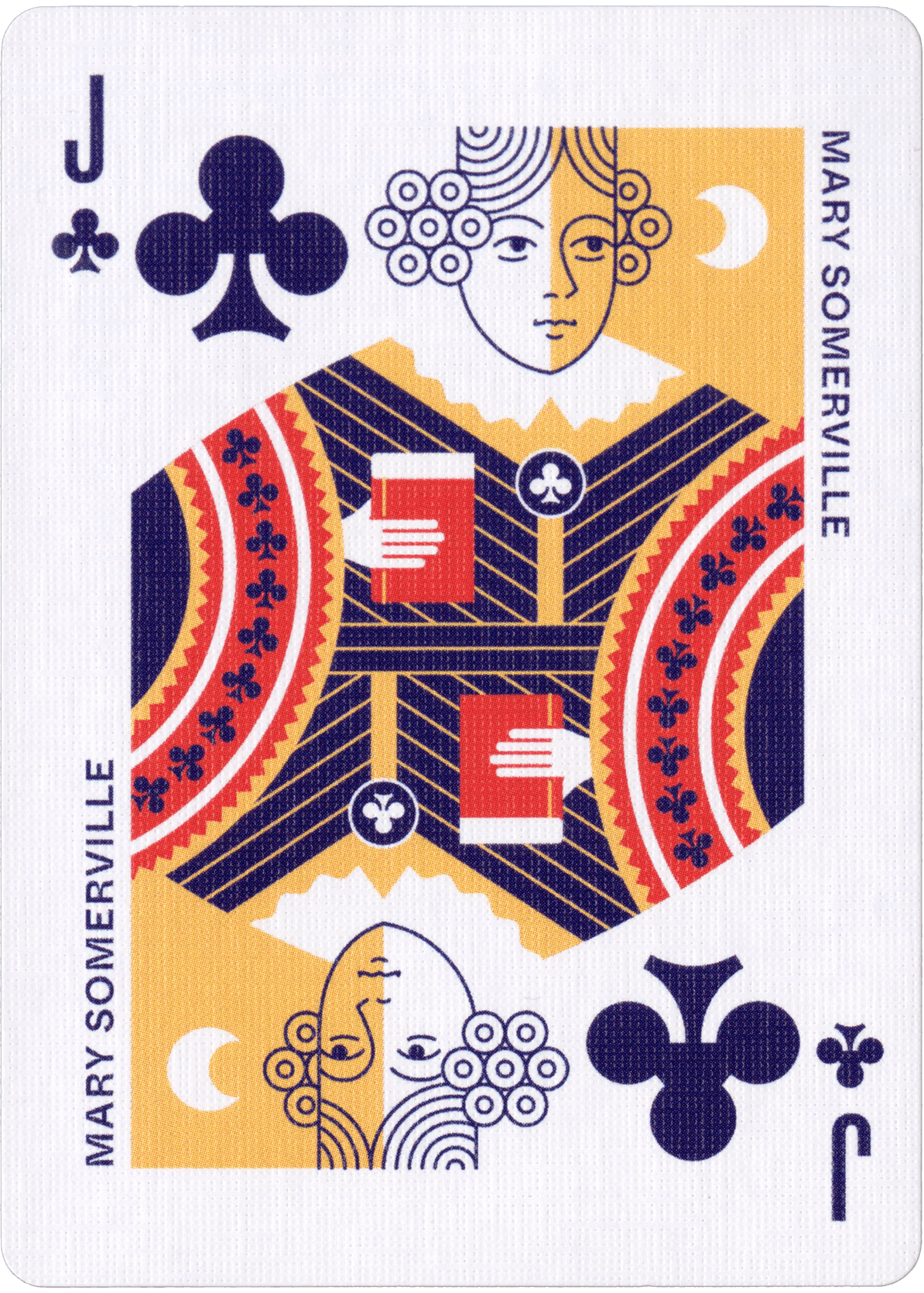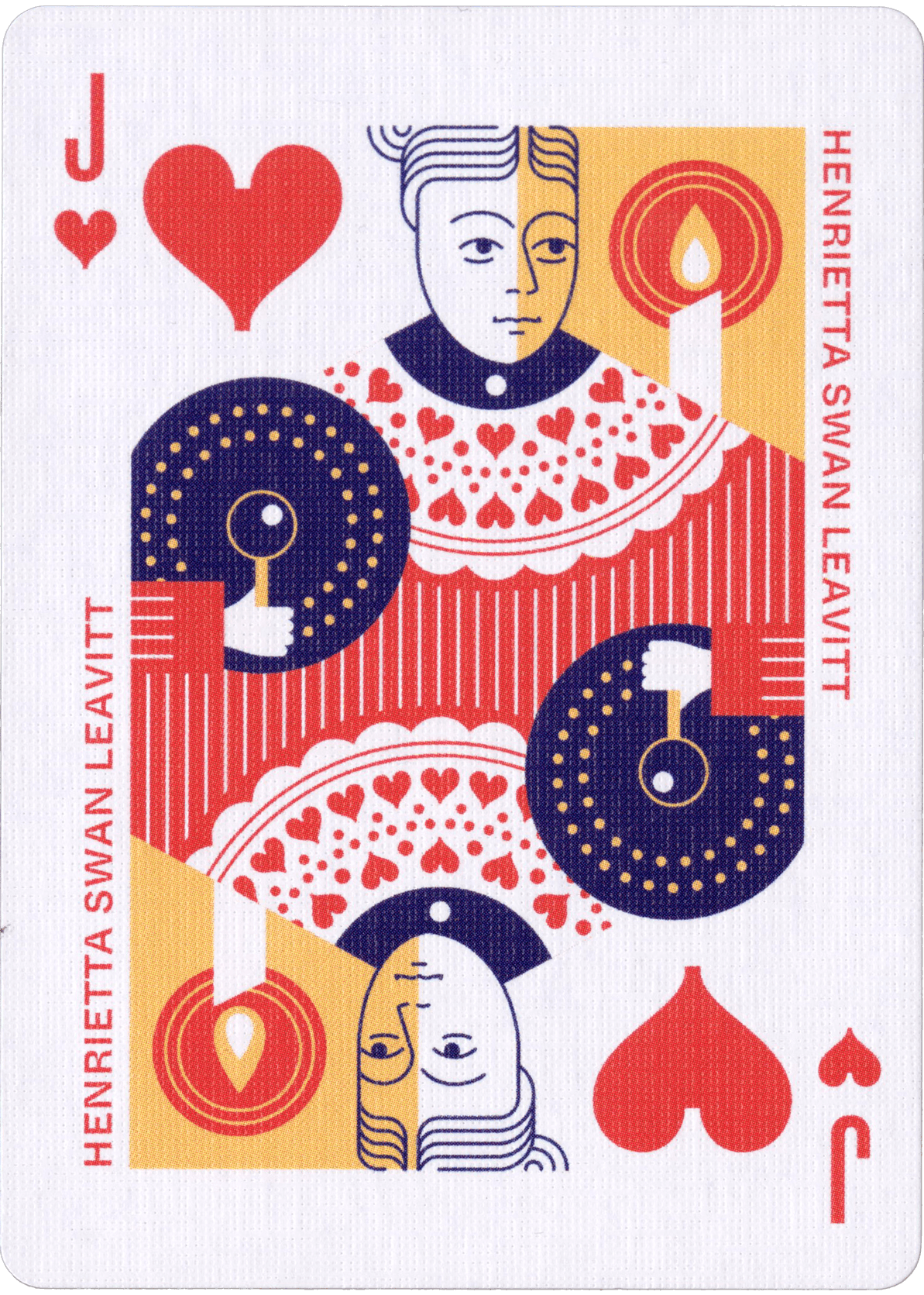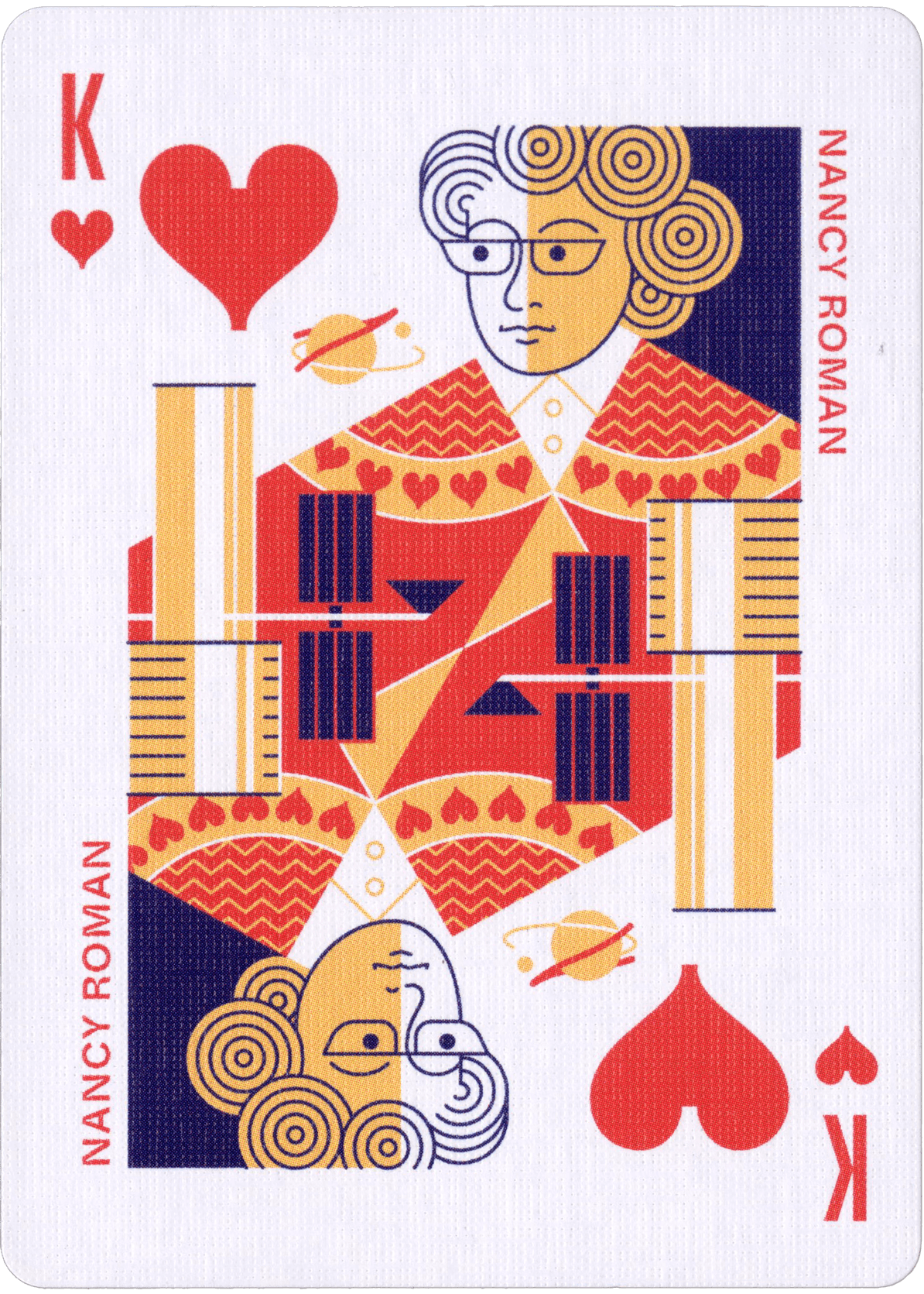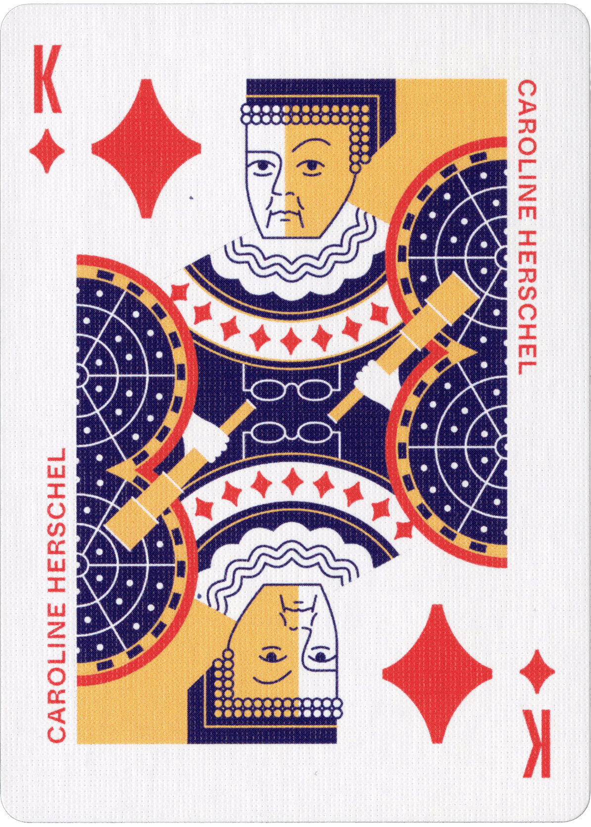 These premium playing cards are designed to celebrate some of the most influential women in the history of astronomy. Each meticulous illustration reflects the character and accomplishments of these remarkable pioneers. The cards come in a sturdy tuck box and are printed on casino style cardstock with a black core and air-cushion finish.
