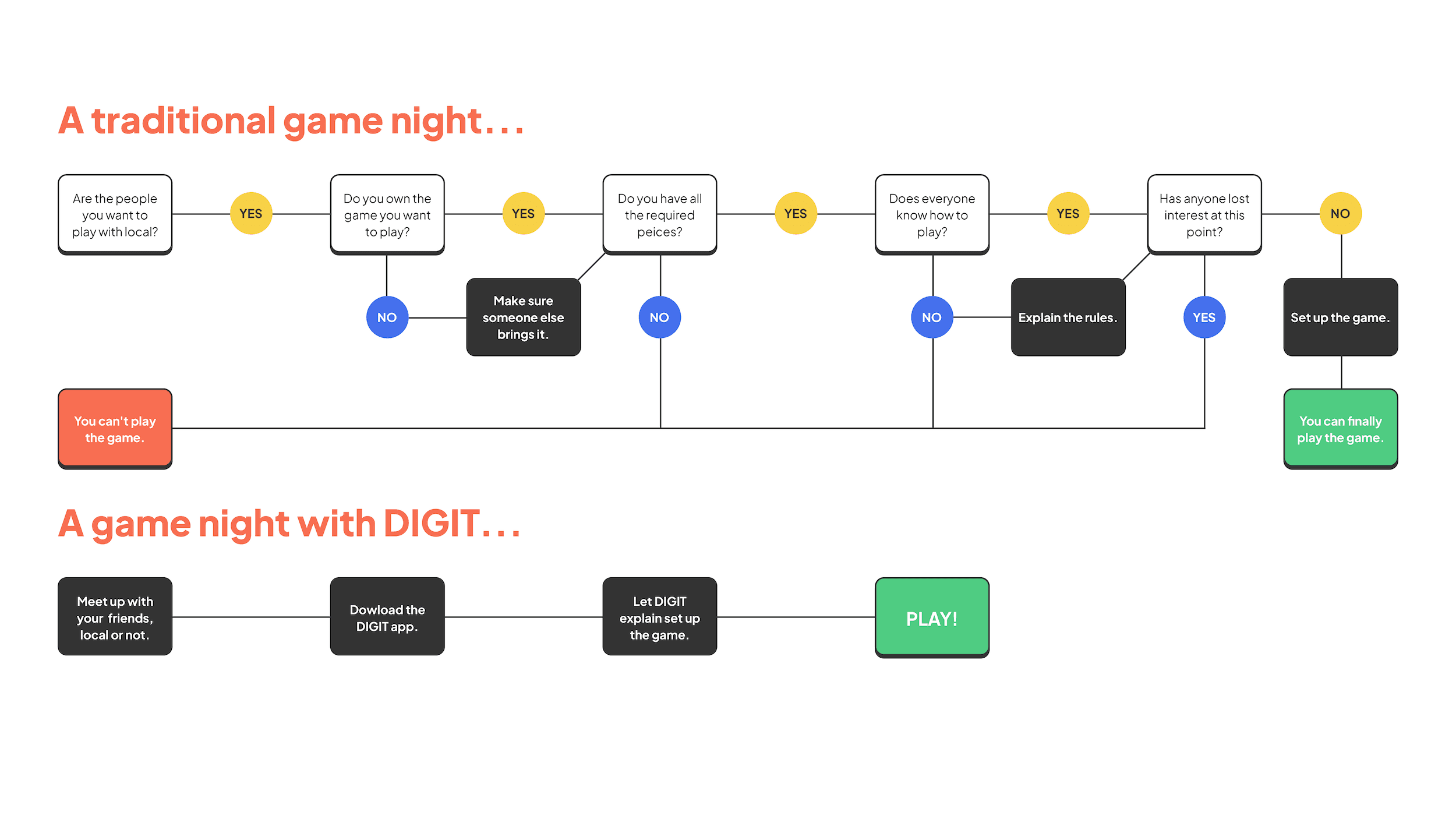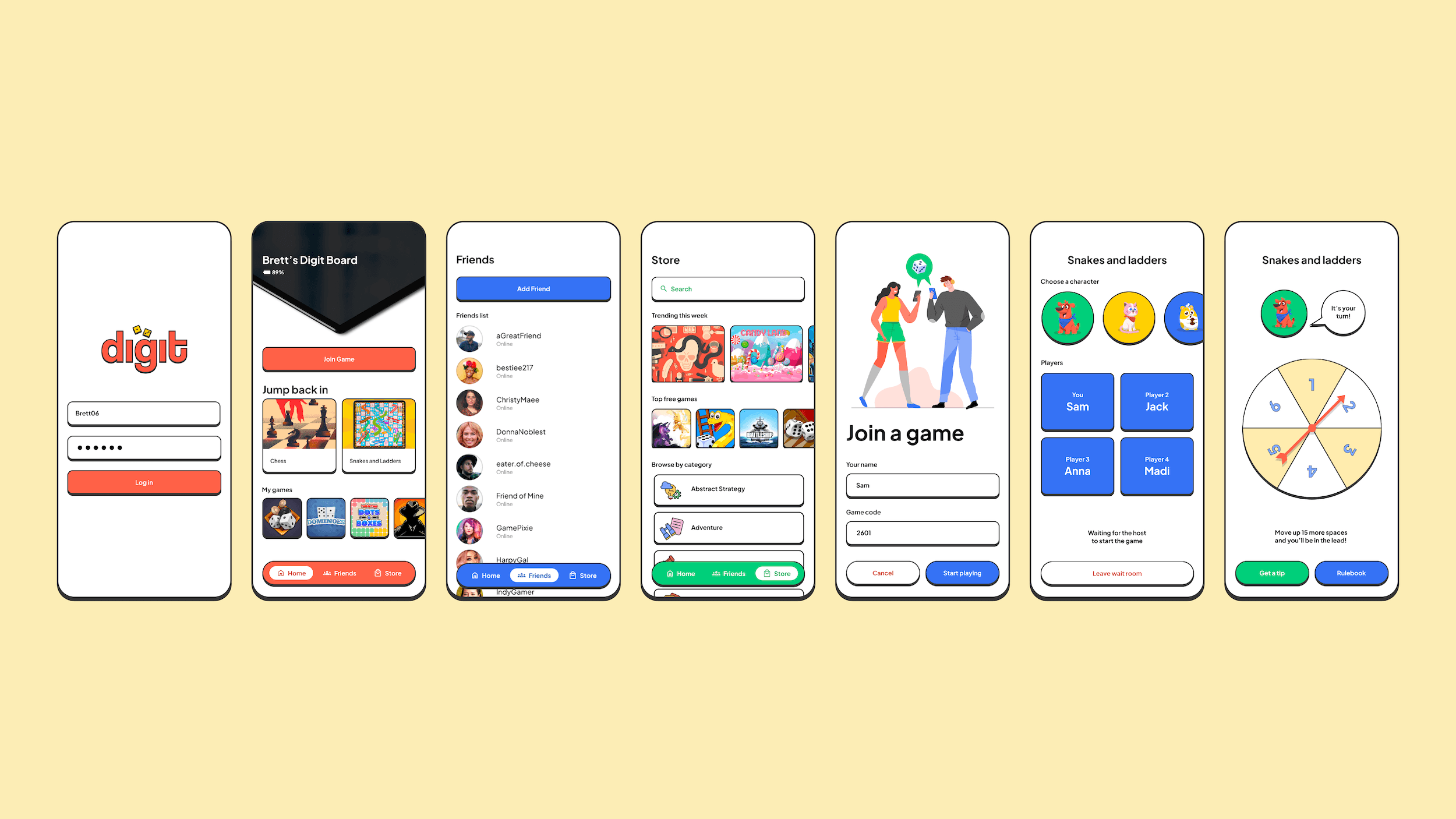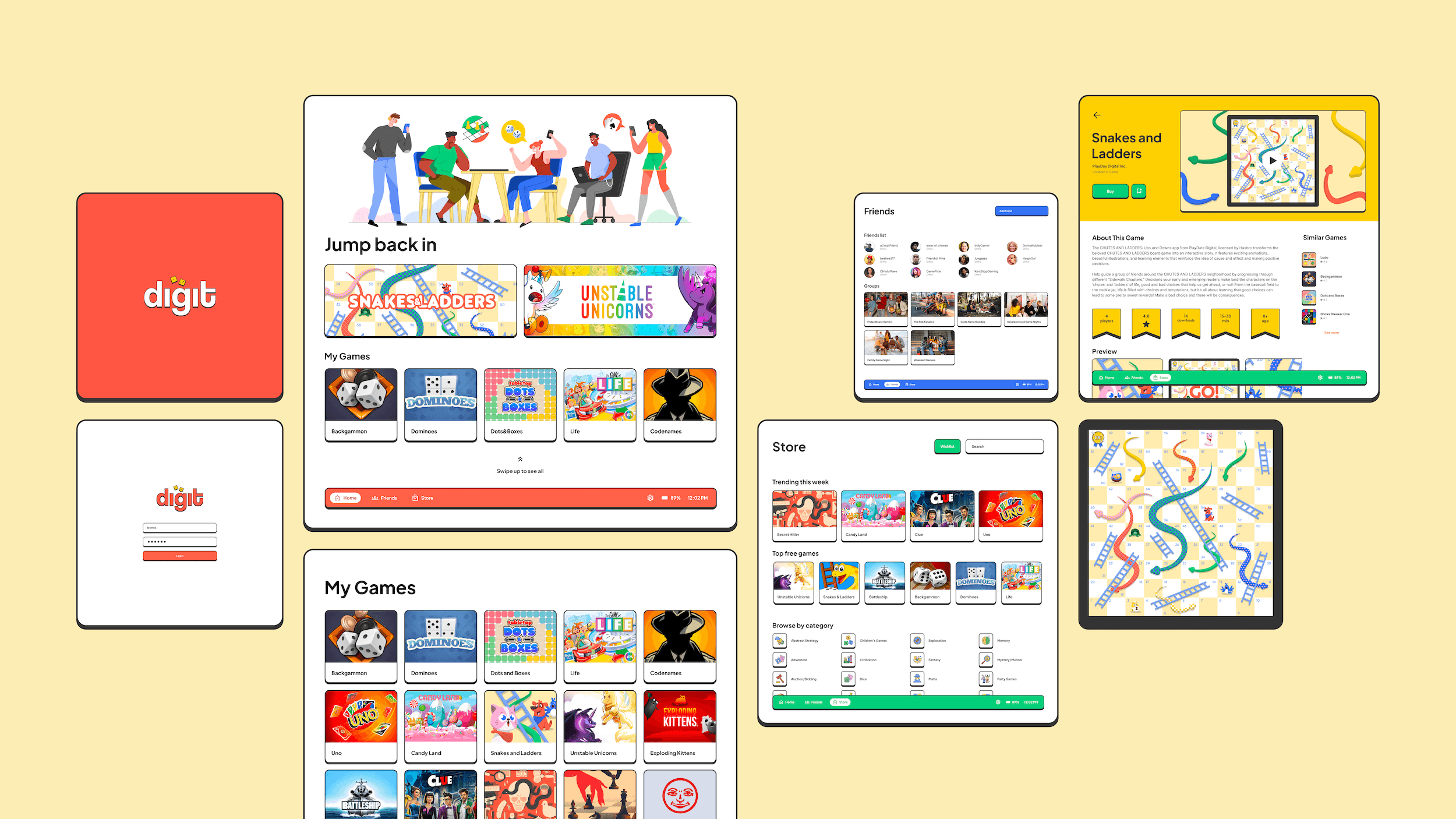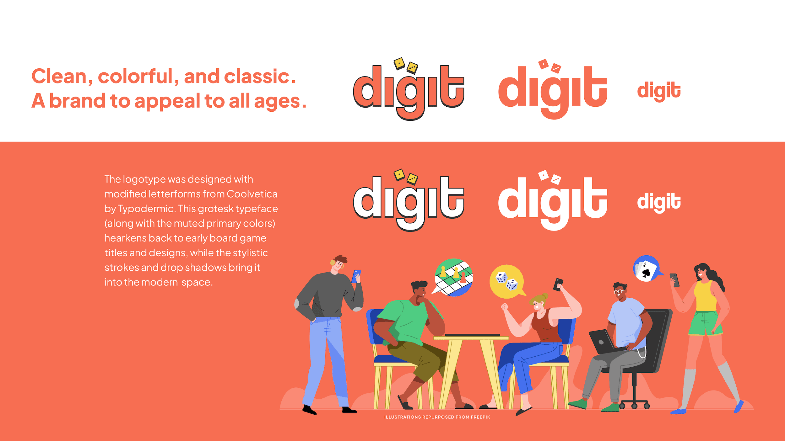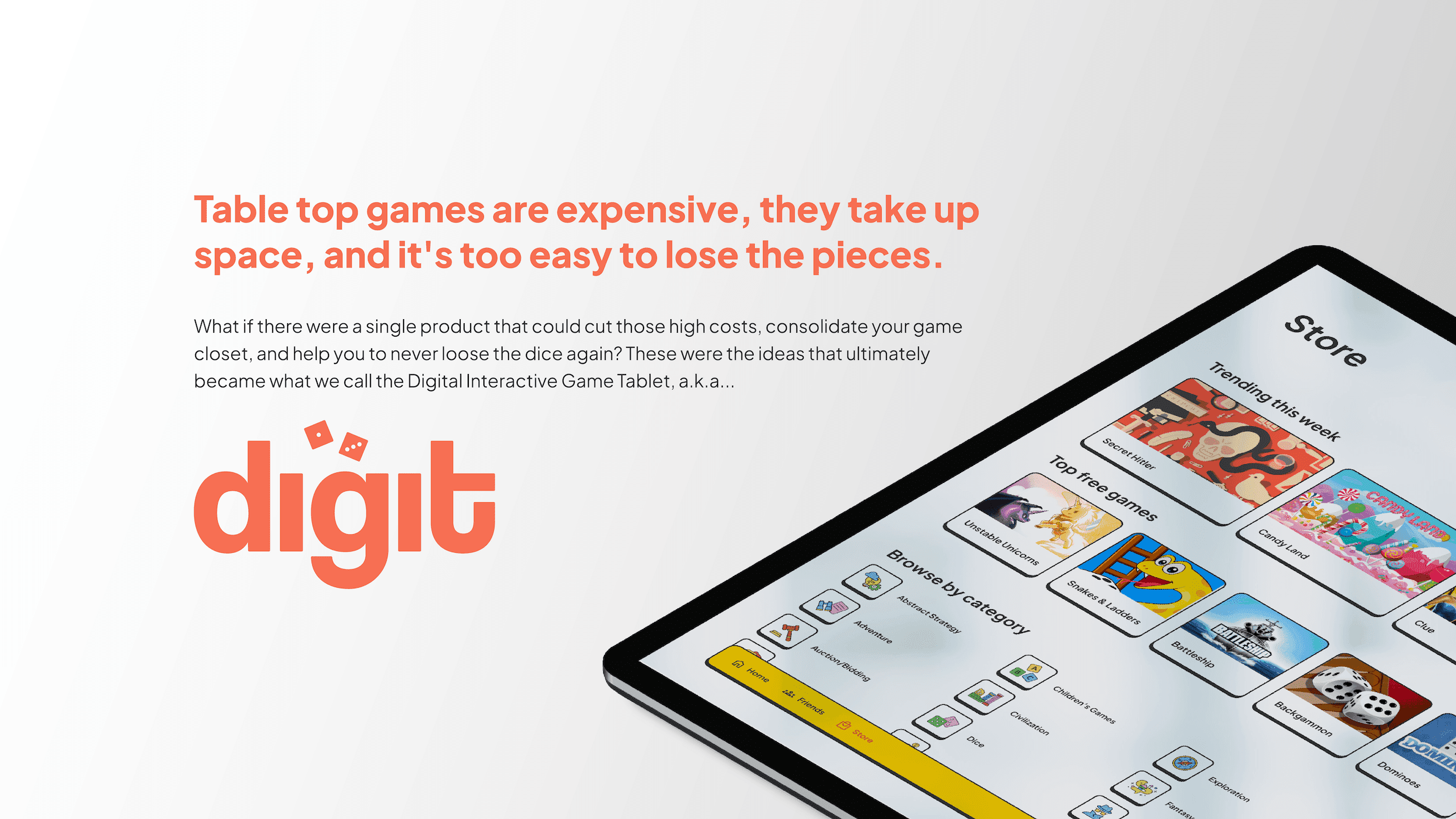 The idea for Digit was the result of 3 week team sprint to create a hypothetical software company. The paramaters involved creating a software product that would have touchpoints across two devices or screens—a phone or laptop, and one of our choosing. After some reasearch, the team and I with came up with a hypothetical digital gameboard, one unlike any in the market up to that point. Team members included myself, Viktoriia Leonenko, Garrett Johns, and Grace Sorenson.