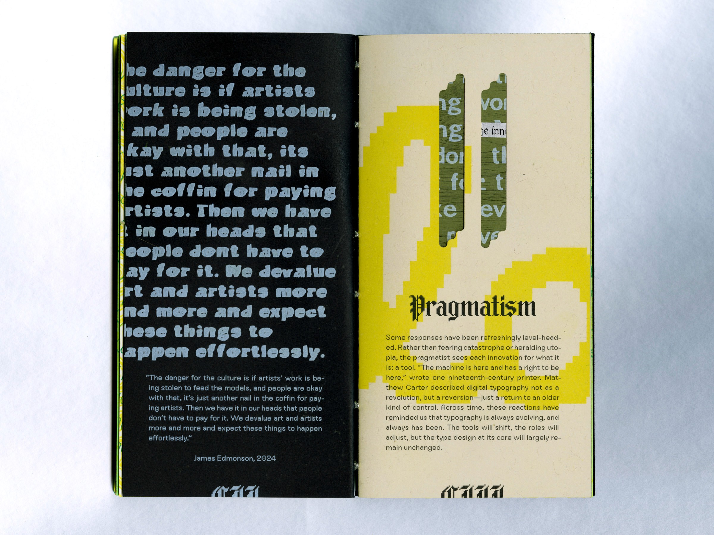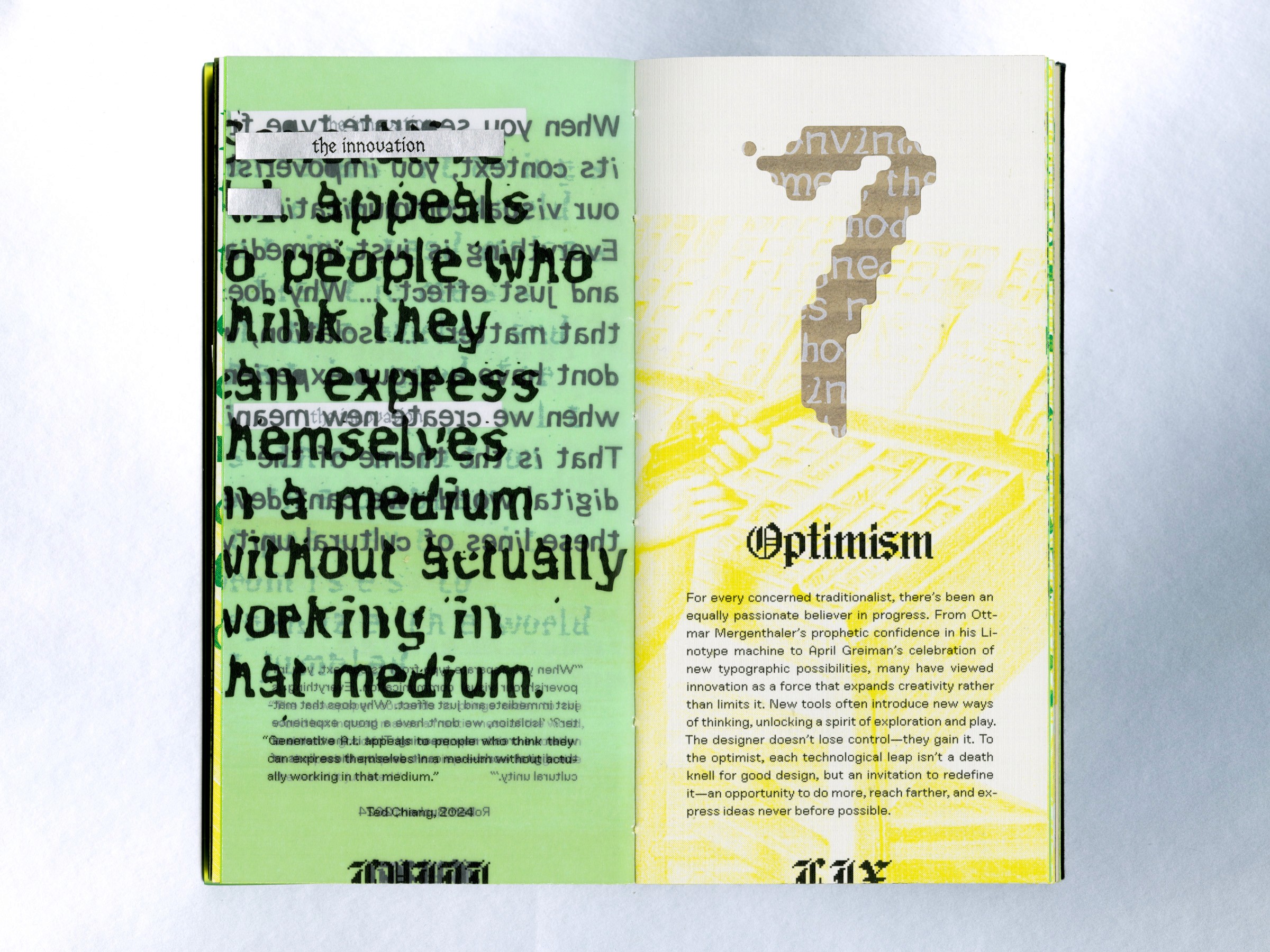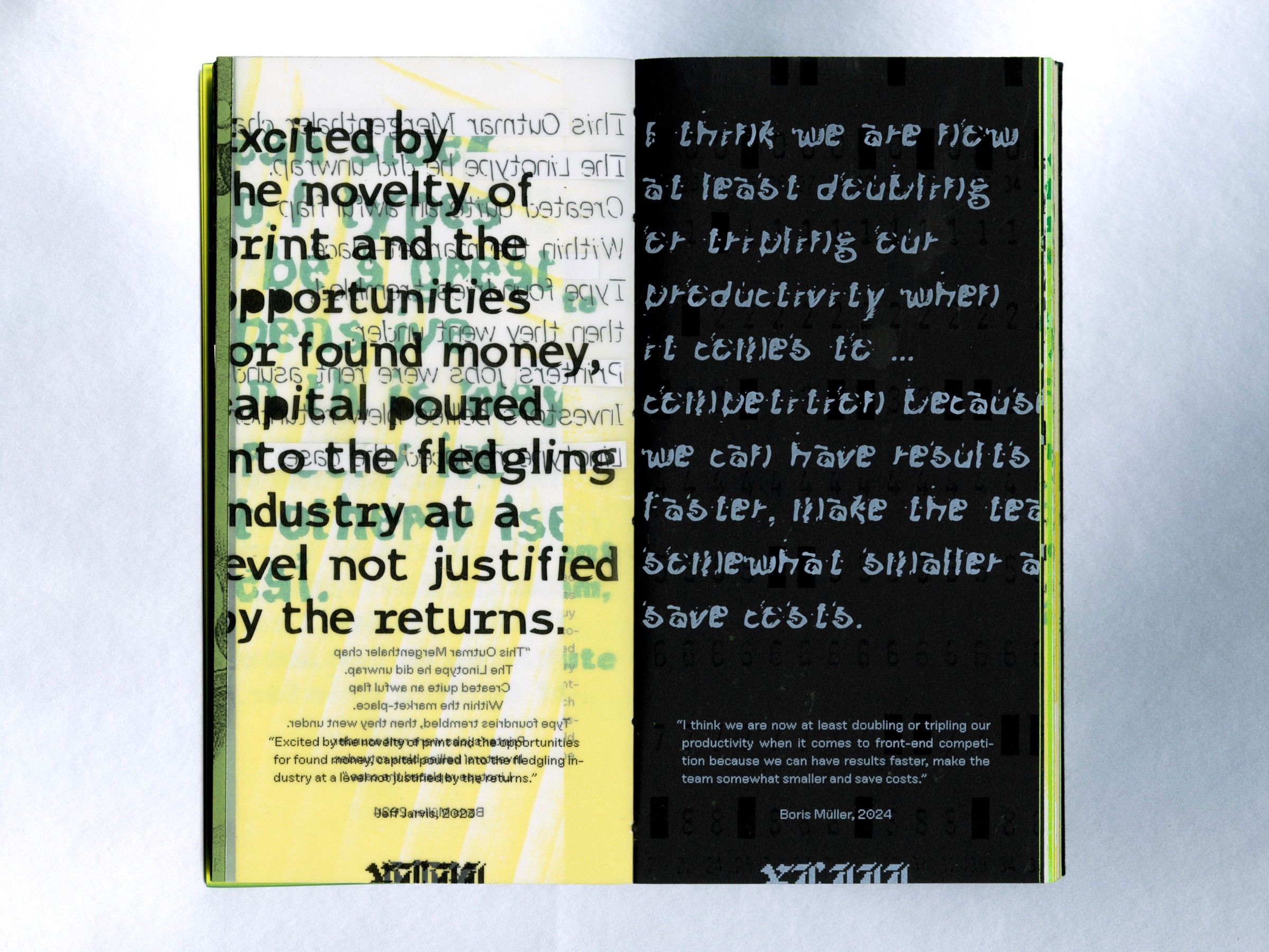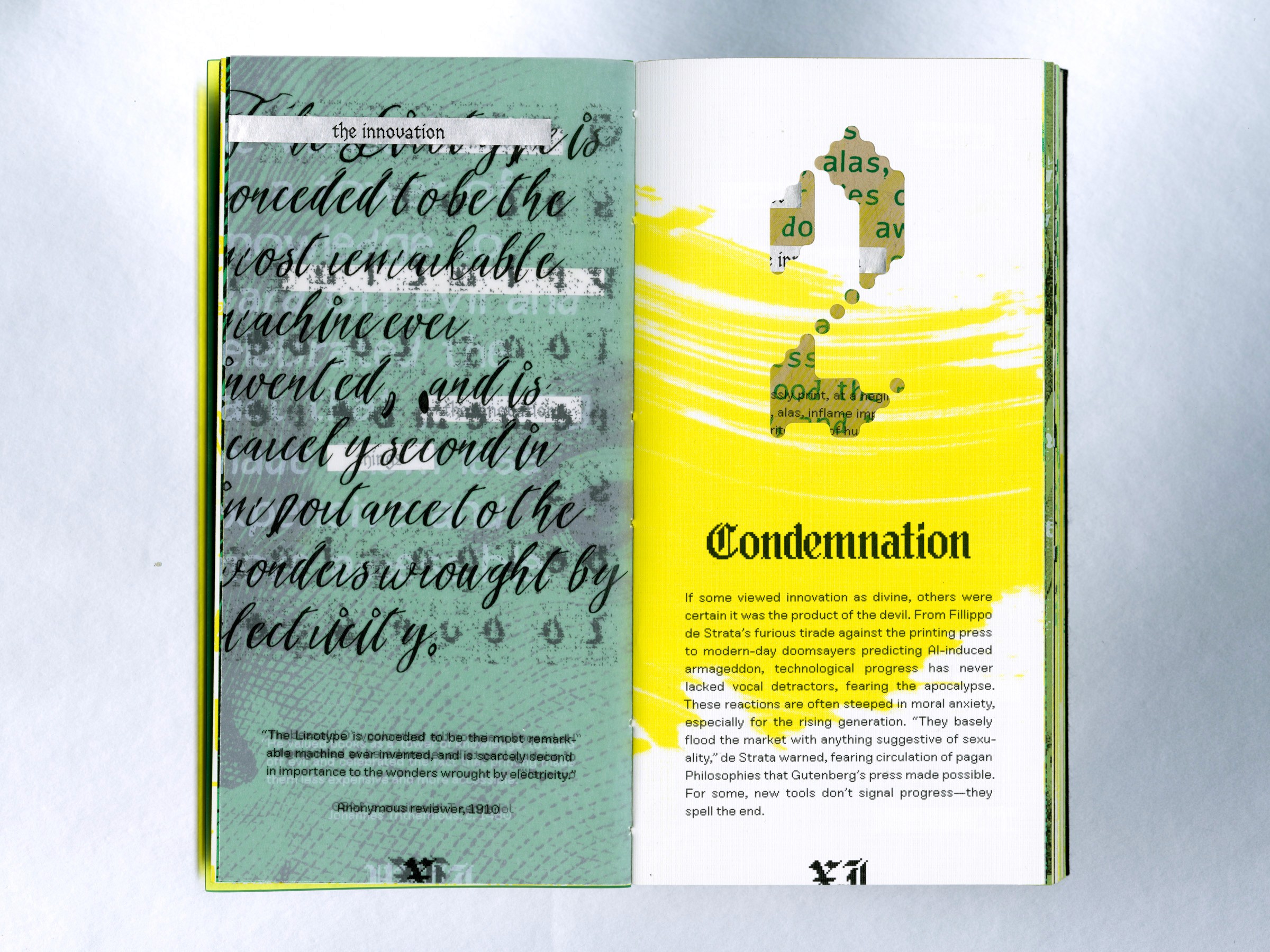 Every major innovation in the type industry has sparked a variety of familar reactions—from glowing praise to fierce condemnation, and everything in between. Over the centuries, predictable patterns have emerged, such that responses to the printing press, the Linotype, and even the Macintosh sound an awful lot like those surrounding AI today. Without essential context clues, can we tell the difference? More importantly, how can past reactions inform our response to the advent of generative typography?