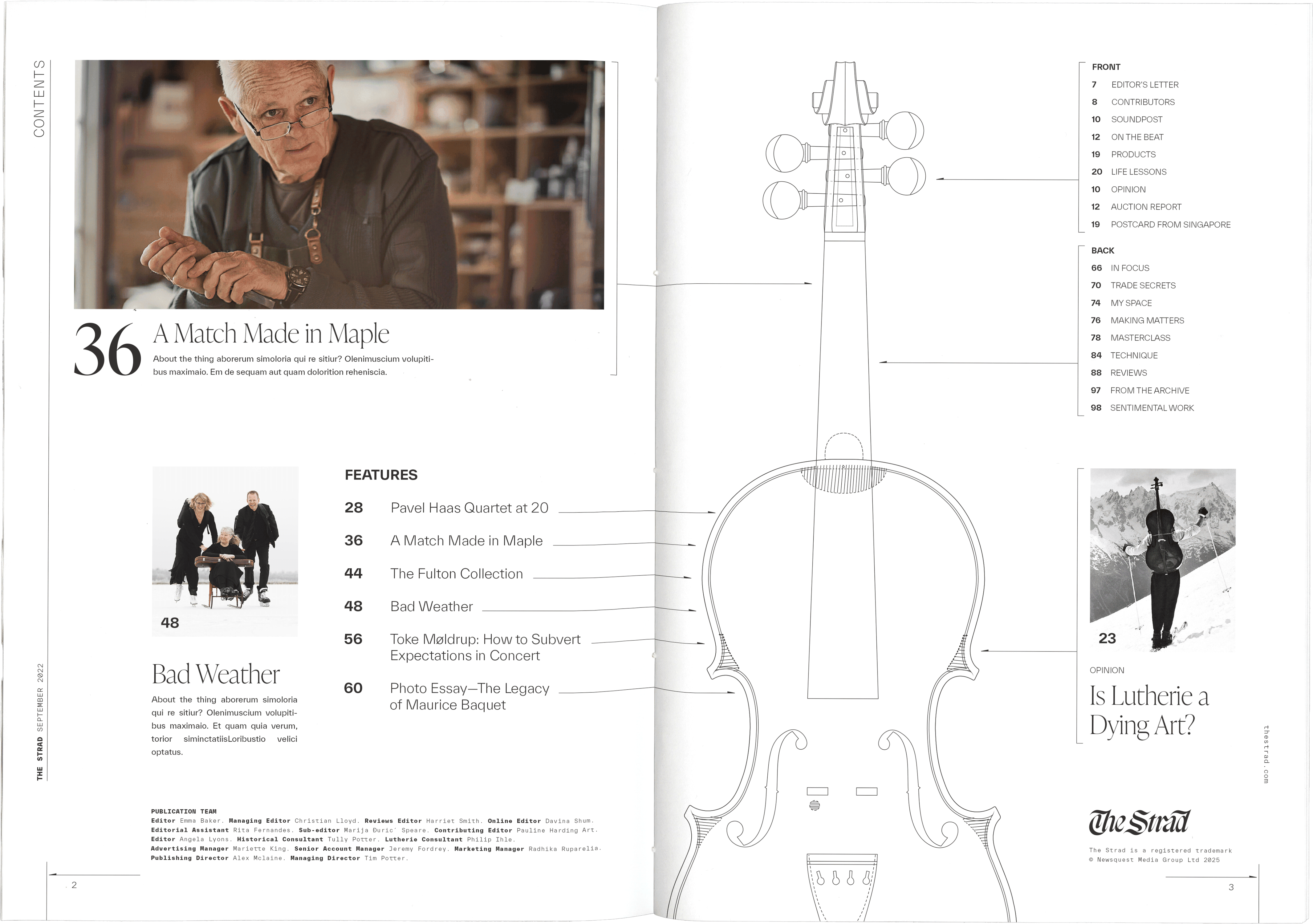 The Strad is a European stringed insturment magazine, regarded as one of the most authoritative and trusted publications of its kind. The objective of this rebrand was to bring the publication’s design aesthetic into alignment with its educational and inspirational mission—to be an “indispensable guide for string players, teachers, and instrument makers alike.” The type and layout is influenced by the look and feel of technical drawings of instrument makers, treating this magazine as a glance behind the curtain of making music.